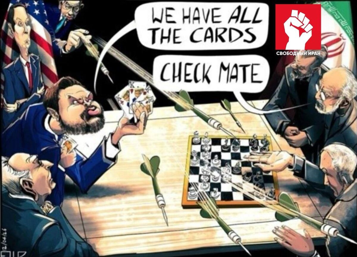 Так вот, на картинке видно, что интеллектуальные представители Ирана предлагают шахматы, а поцоватые американцы "играют в покер" и кидаются исподтишка дротиками дартса (ракетами?).